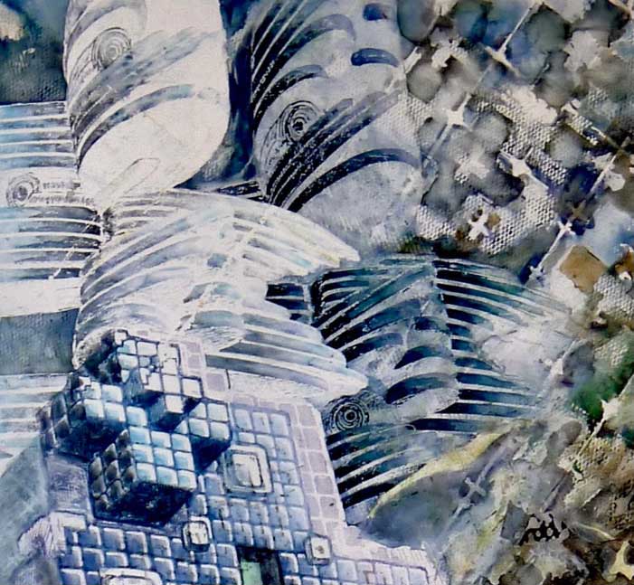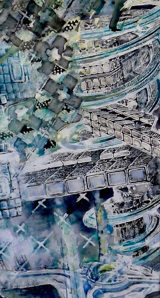 Form: ein Stadtteil, dessen Gebäude aus Bildschirmen und Monitoren besteht