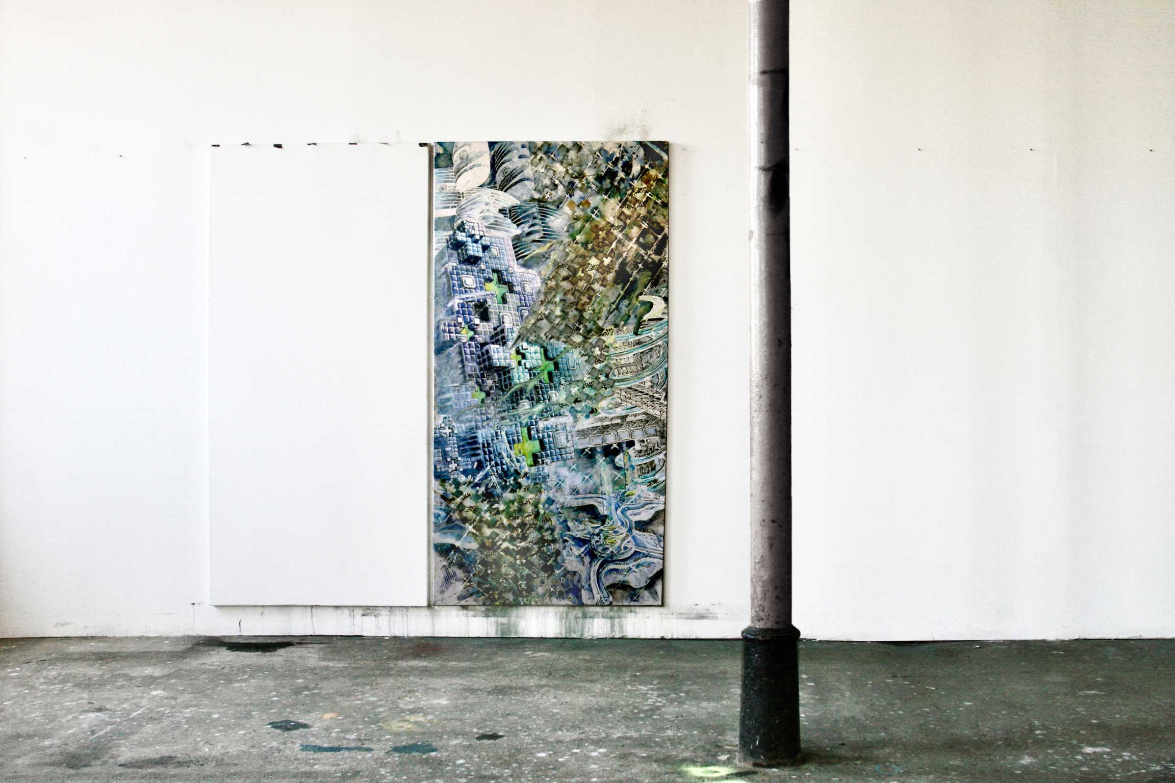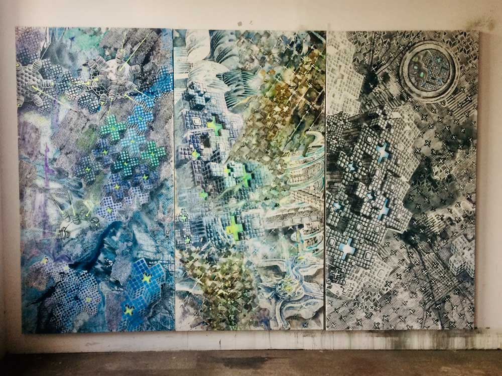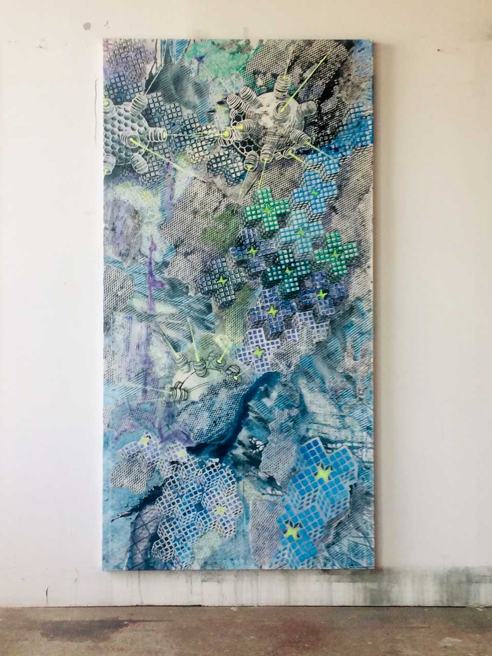 Form: aufeinander getürmte gekachelte Kreuzelemente